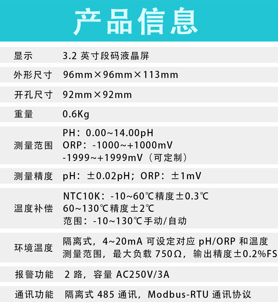 適用場合:PH/ORP測試儀是一款智能在線化學分析儀器之一,是一款廣泛應用于火電、化工化肥、冶金、環(huán)保、制藥、生化、食品和自來水等溶液中PH值或ORP值和溫度的連續(xù)監(jiān)測。 連續(xù)監(jiān)測數(shù)據(jù)通過變送輸出連接記錄儀實現(xiàn)遠傳監(jiān)控與記錄,也可以連接RS485接口通過MODBUS-RTU協(xié)議可方便聯(lián)入計算機實現(xiàn)監(jiān)控與記錄。